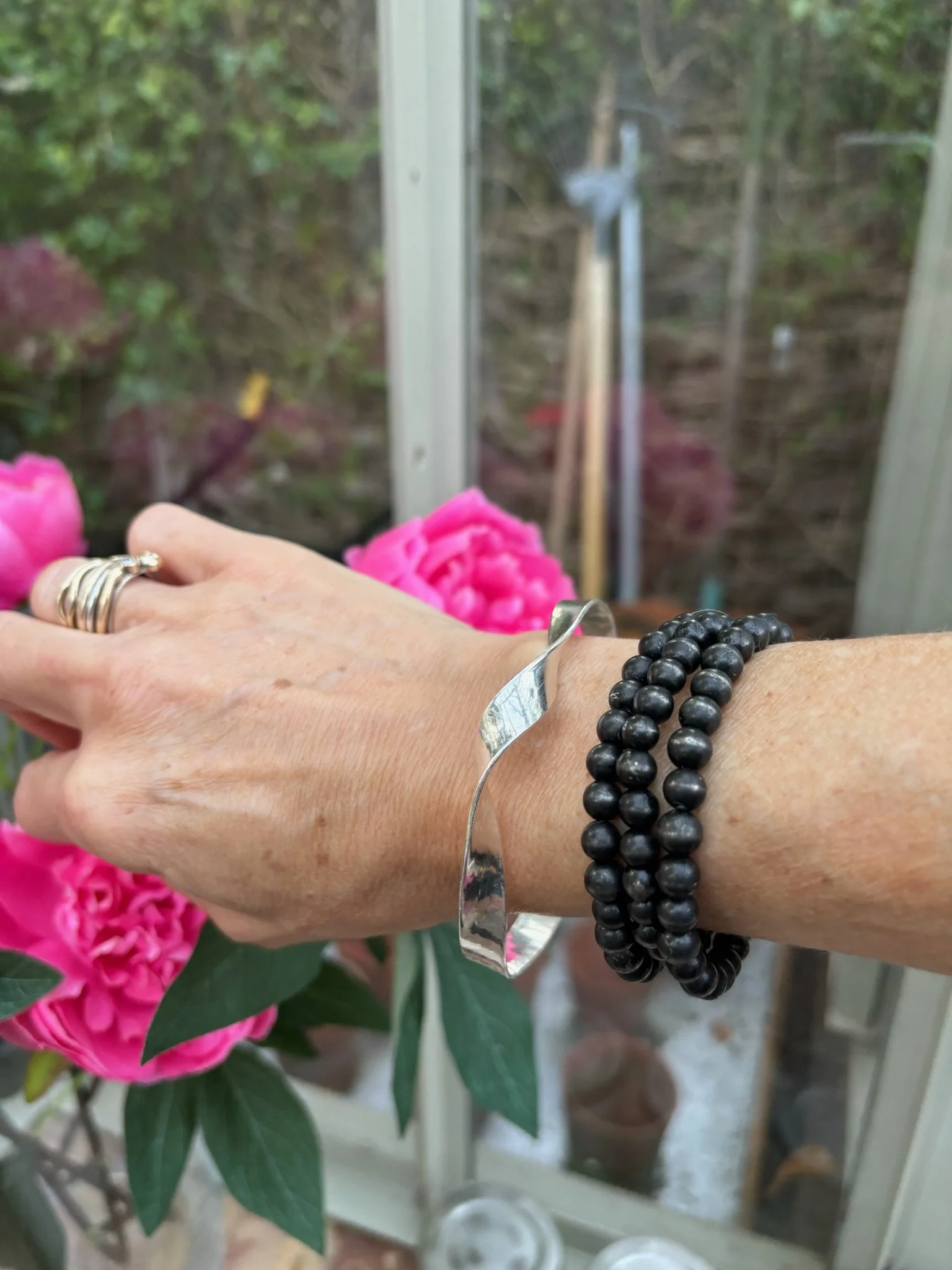 Silver double wrap-around ring with 9ct gold bead and gold filled tube setting with cubic zirconia